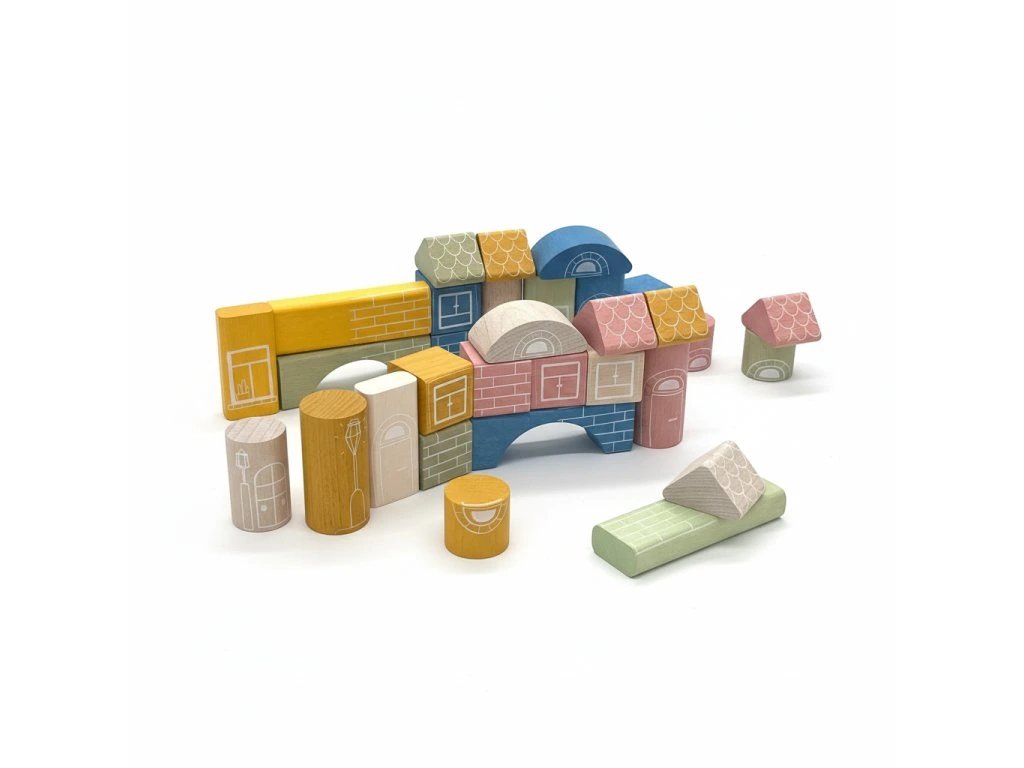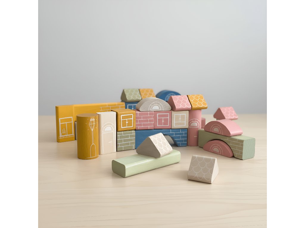“Každá stavba začíná jednou kostkou….” A v naší sadě jich najdete rovnou 30. Různých tvarů a barev. Potisk na nich je přitom tak jemný a nenápadný, že ho oči Vašich dětí budou vnímat. ale nebude je rušit.