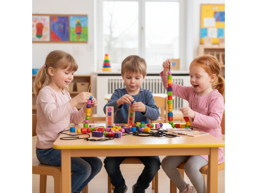 Zlepšovat koordinaci rukou a očí, rozšiřovat prostorové vnímání, rozvíjet jemnou motoriku? Rozeznávat a třídit barvy, tvary? Chcete pomoci při prohlubování soustředění a utváření předmatematických představ a dovedností?