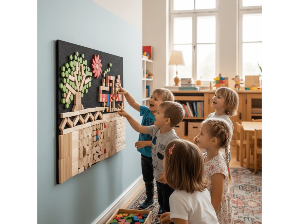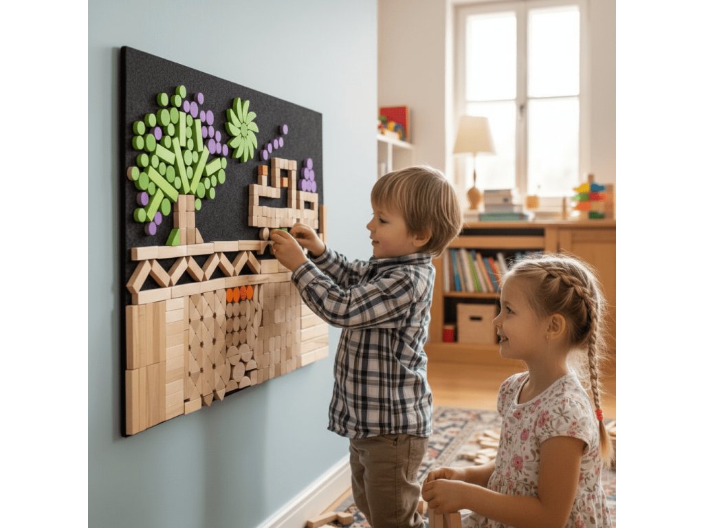 Do této chvíle měly dřevěné dílky v rozšiřujících sadách přírodní povrchovou úpravy, Ale nyní tuto nabídku přichází rozšířit sada s barevnými dílky. Nový vizuální rozměr. Lepší práce s kontrastem, tvary i kompozicí. Různé tvary a barvy. Přitom zůstává stále kompatibilní se stávající hrací stěnou a zachovává jednotný systém skládání. To vše Vám i Vašim dětem poskytne Hrací stěna - barevné dílky 125. Navíc stejně jako podobné výrobky v nabídce podporuje rozvoj kreativity, jemnou motoriku a prostorovou představivost.