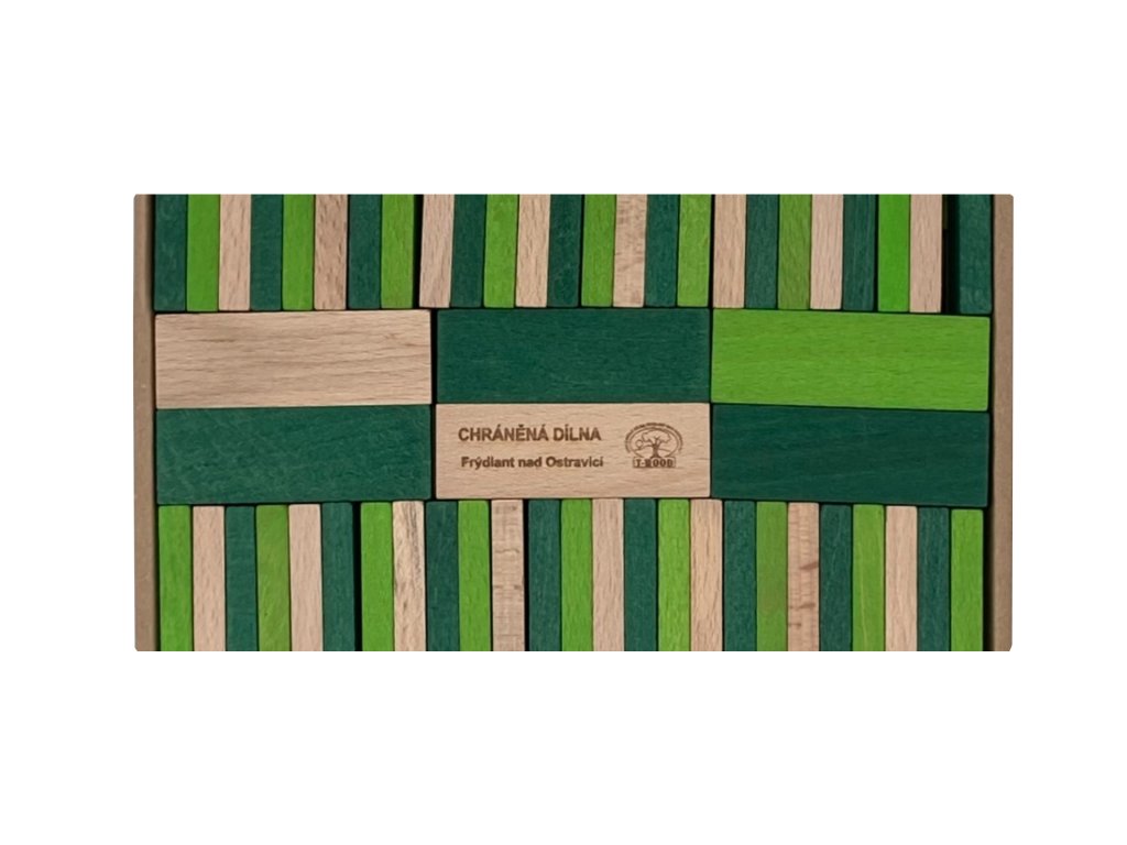 Řekněte, které dřevo je ideální volbou pro výrobu kostek v této stavebnici? Je jím bukové dřevo z českých lesů, Tyto kostky jako výsledek mechanického opracování mají na dotek hladký a příjemný povrch a Vaše dítě si je rychle oblíbí.